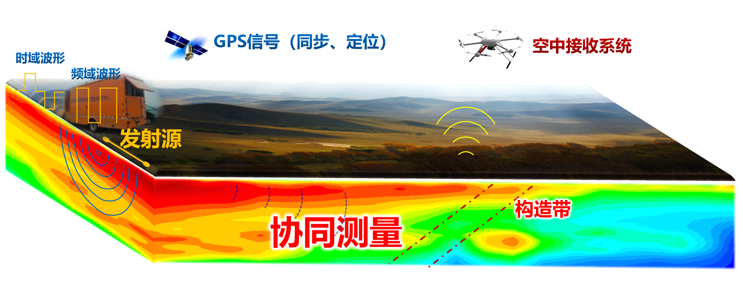 ◆地空協(xié)同電磁探地技術(shù)技術(shù)優(yōu)勢(shì)●高效率:大功率電源車(chē)發(fā)射信號(hào),無(wú)人機(jī)空...